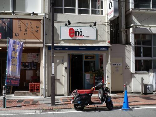 ラーメンの後はこちらでひと休み。 cafe emo. espresso 2008年オープンのイタリア系エスプレッソのお店。 バイカー向けのお店でもあるようです。 約10年7か月ぶり2度目の来店。 店内 ポップな雰囲気。 カウンター5席、2人用テーブル席2卓、1人用テーブル2卓…